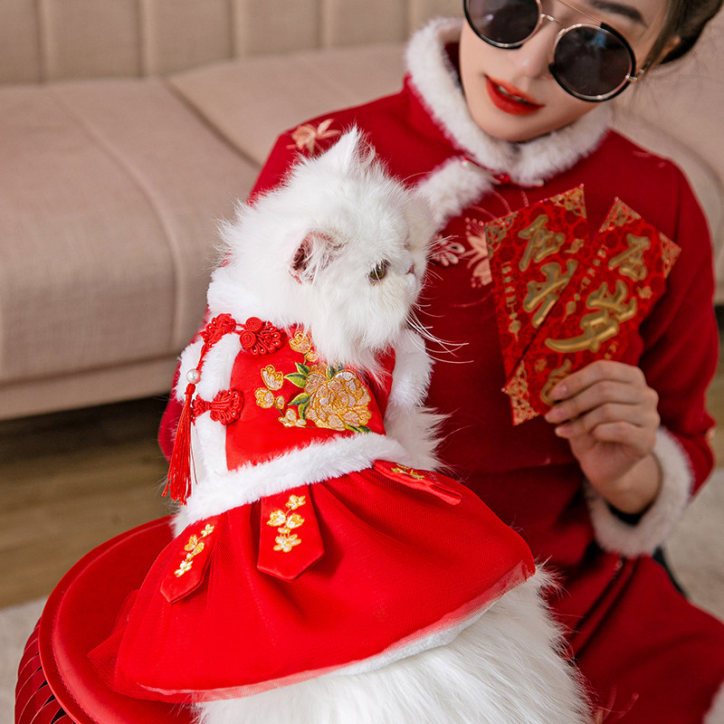 新年唐装小猫咪衣服冬幼猫猫布偶猫蓝猫陪嫁猫宠物拜年防掉毛冬季