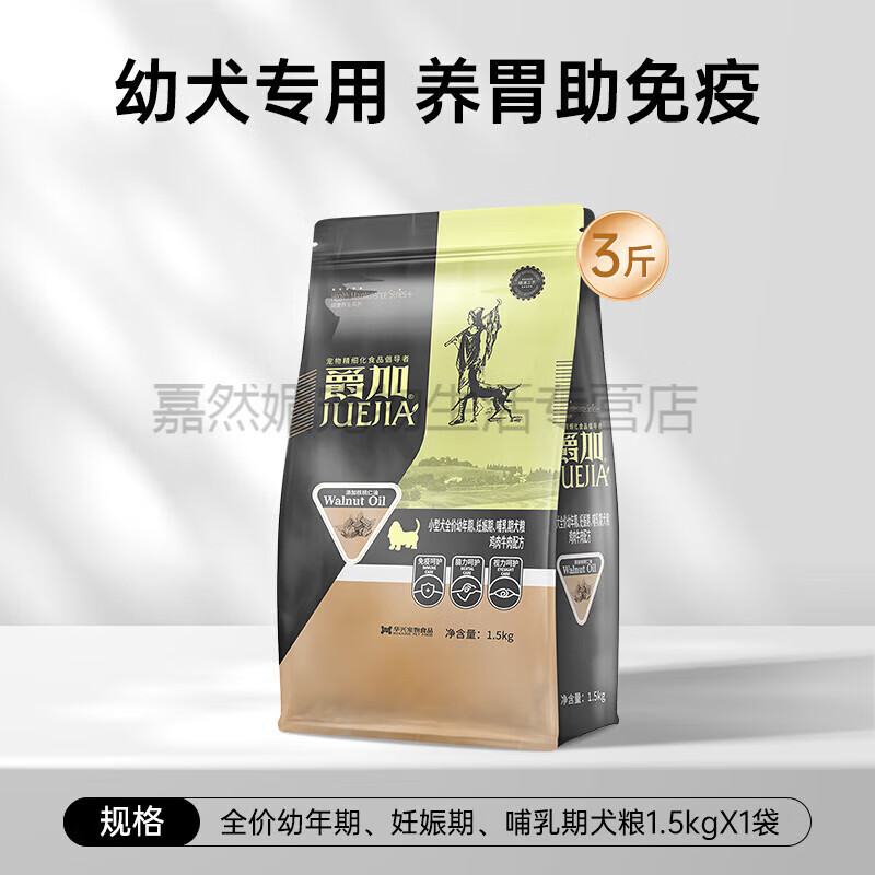 爵加幼犬专用狗粮1.5kg1-12个月博美泰迪比熊拉布拉多通用型3斤装 【1-12月幼犬专用】鸡肉牛肉味 1.5kg