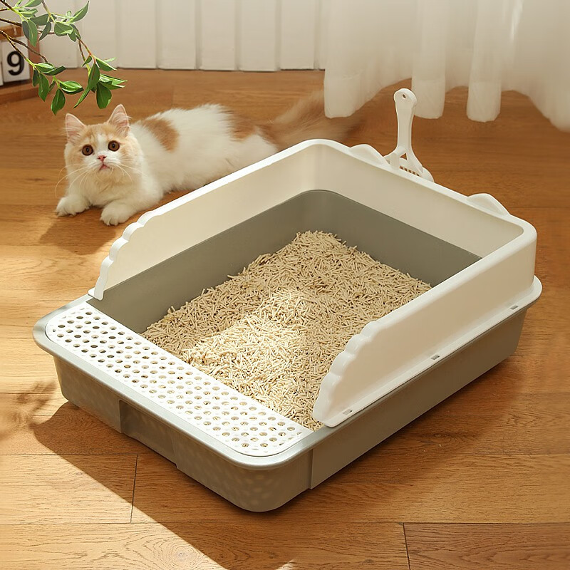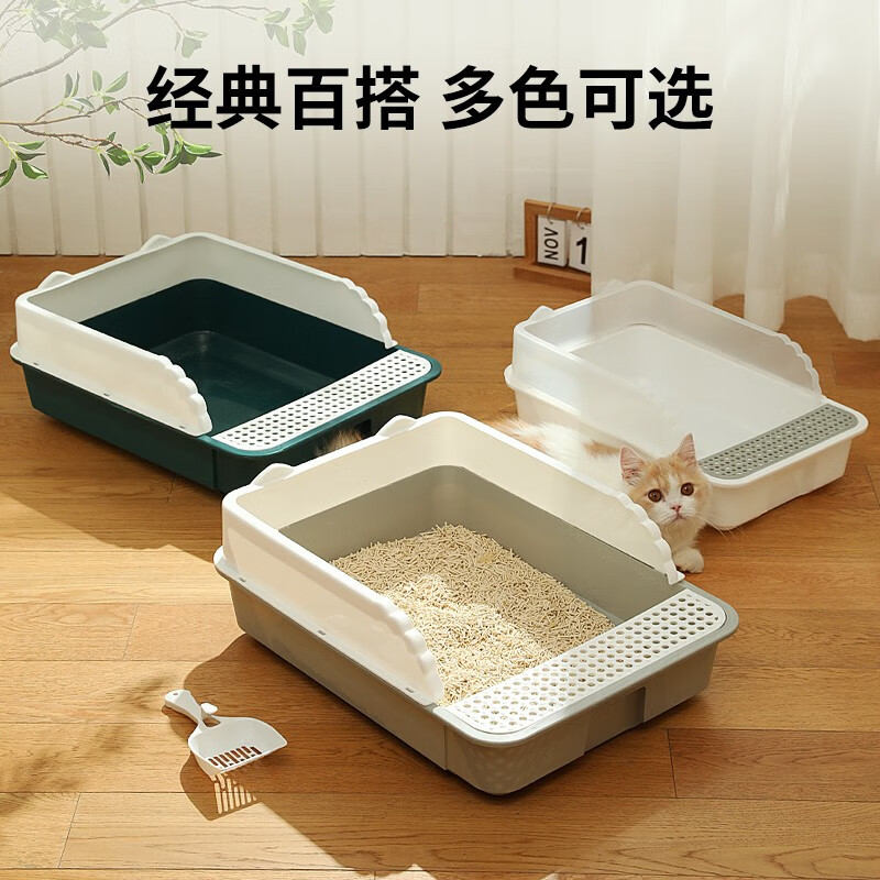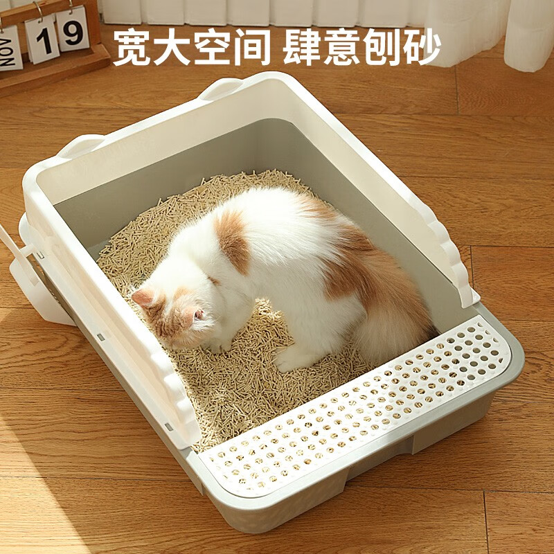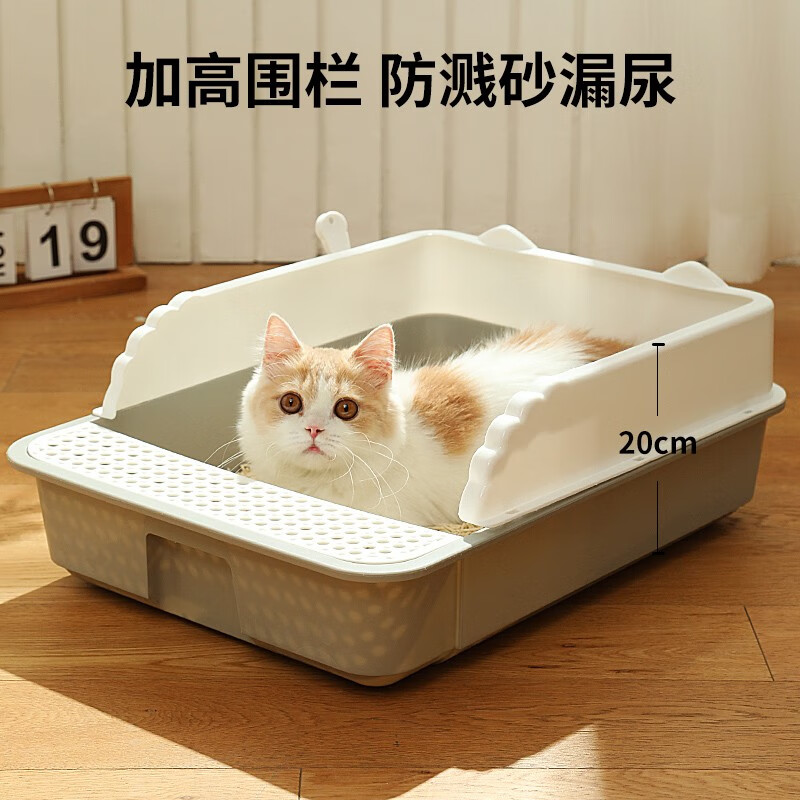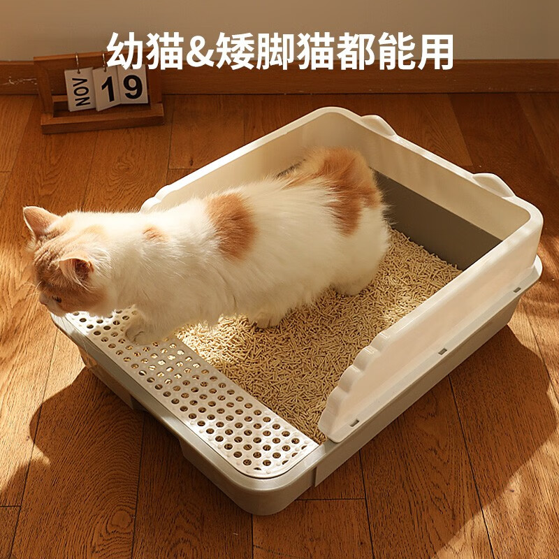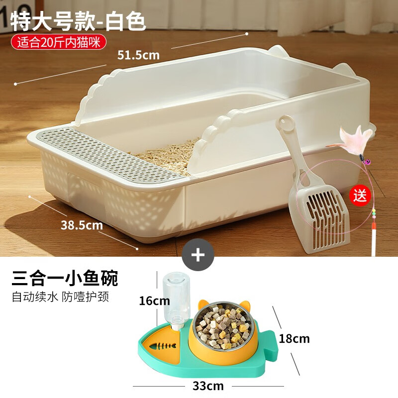 Kimpets猫砂盆超大号半封闭式防外溅猫咪厕所特小号幼猫专用沙屎盆子用品 白色特大号 小鱼三合一碗