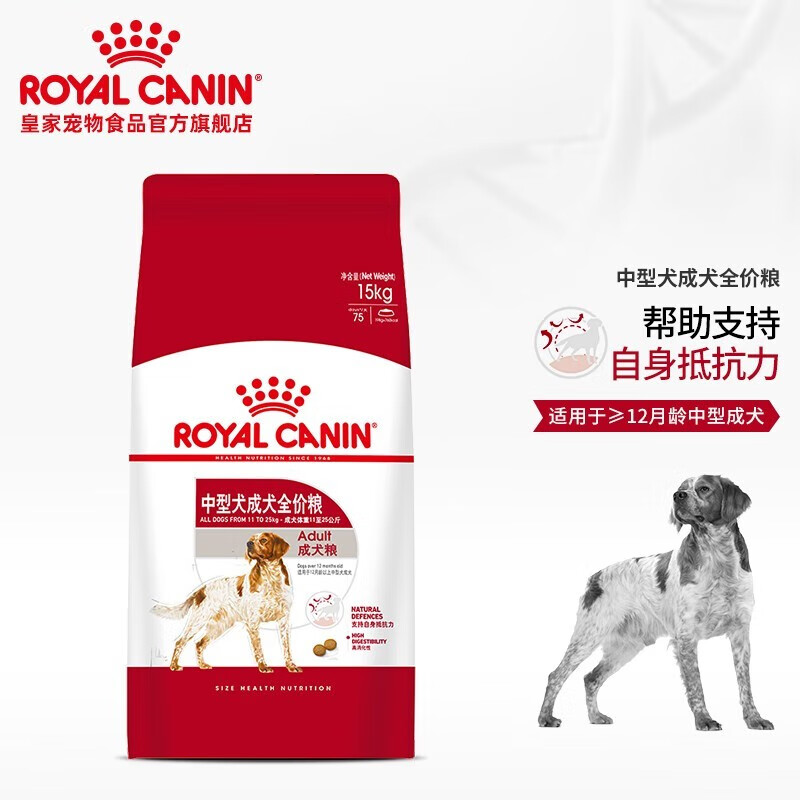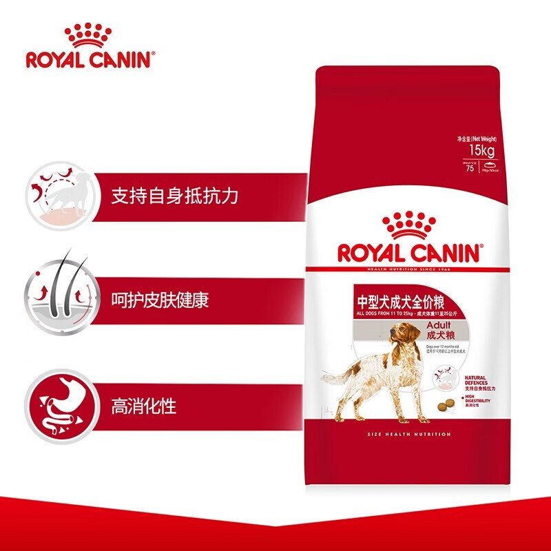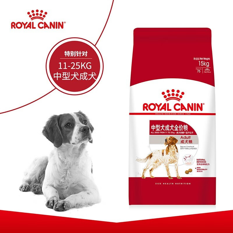 皇家(ROYAL CANIN)中型犬 全价粮 中型犬成犬 M25/15KG