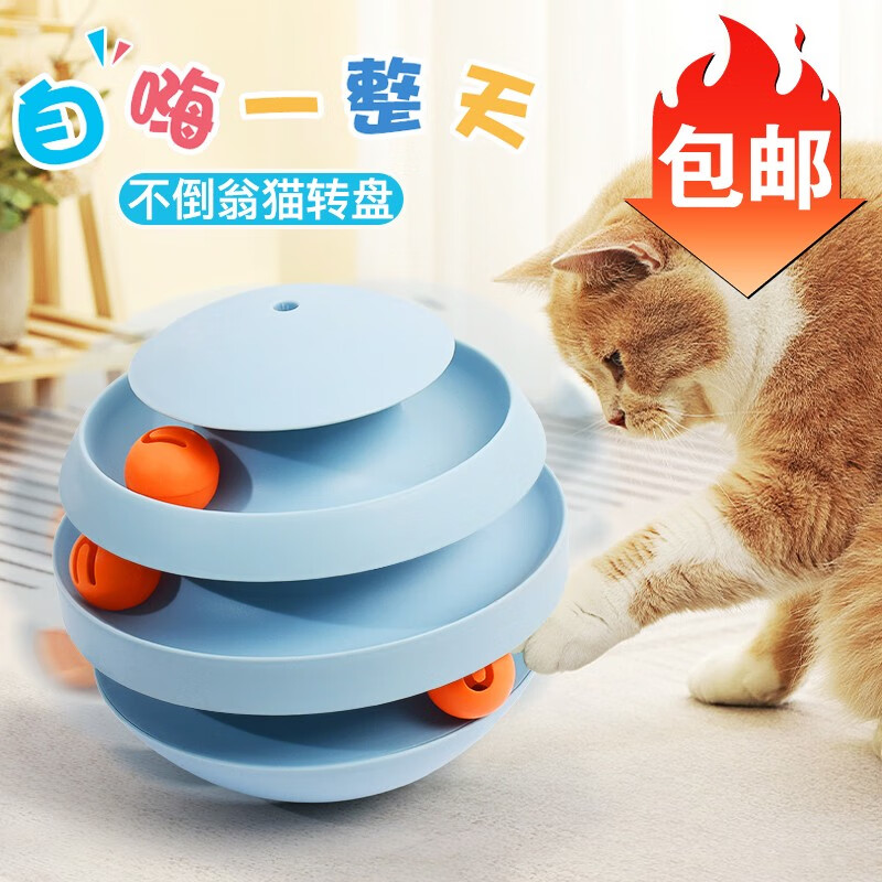 派乐特 猫玩具自嗨解闷不倒翁宠物玩具球逗猫神器耐抓猫咪用品 捣蛋猫星球转盘 三层轨道