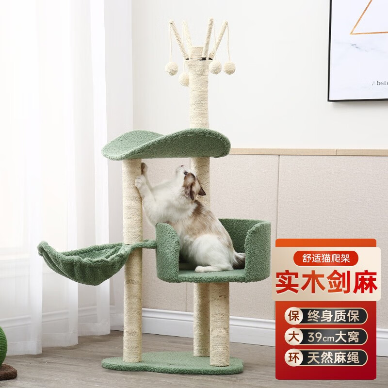 法耐(FANAI)猫爬架实木剑麻柱猫抓板猫抓树猫窝猫抓柱一体猫架猫架子猫咪玩具 1808一叶青舟