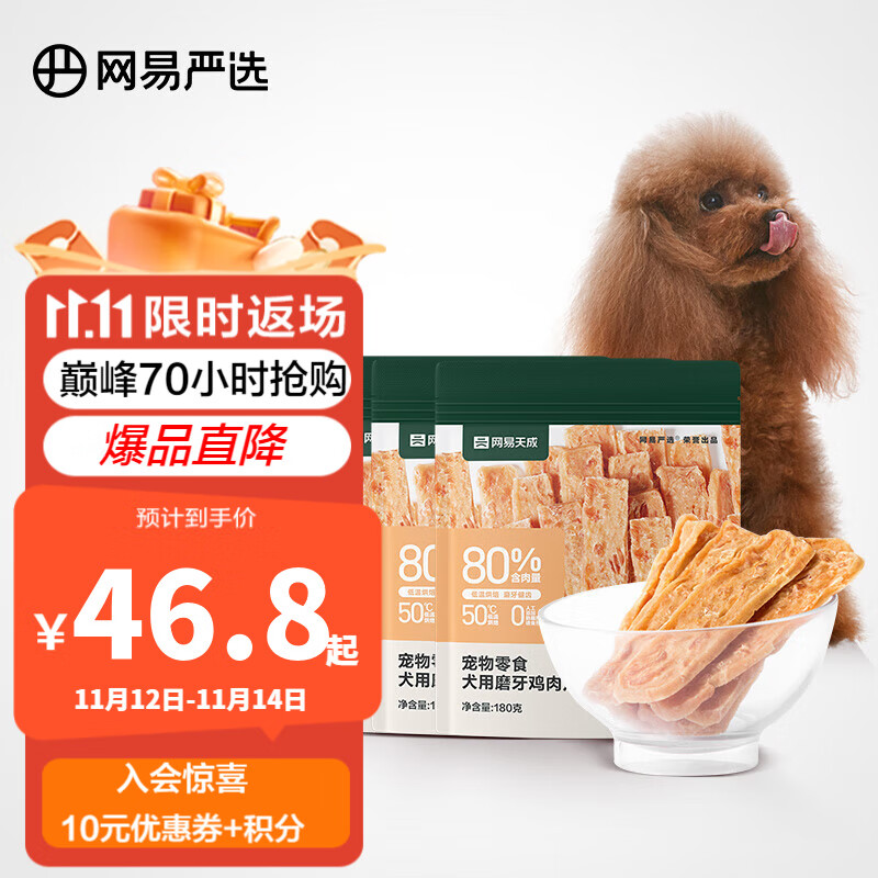网易严选 磨牙鸡肉片 70%肉含量醇香犬用零食磨牙棒柯基柴犬泰迪训练奖励 180g*3袋装