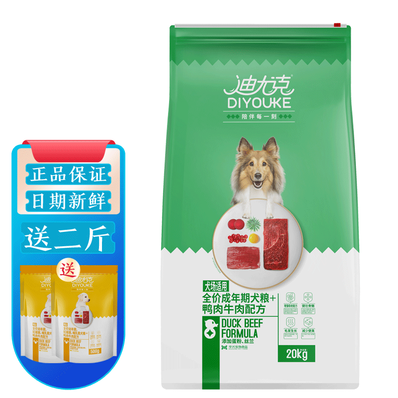 迪尤克狗粮泰迪阿拉斯加比熊巴哥英牛金毛贵宾博美萨摩耶哈士奇通用型 成犬狗粮20kg40斤