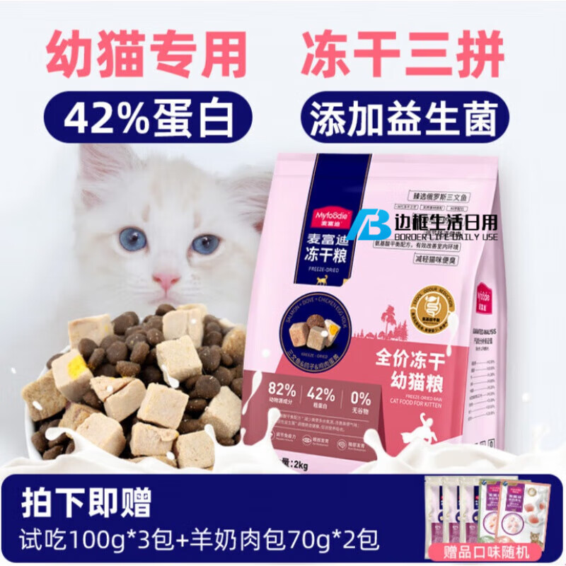 麦富迪(Myfoodie)麦富迪幼猫奶糕粮猫粮幼猫冻干粮主食4到12月专用猫奶糕 0g 成猫2kg【赠试吃300g 羊奶肉包2