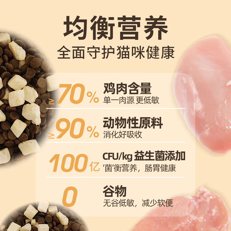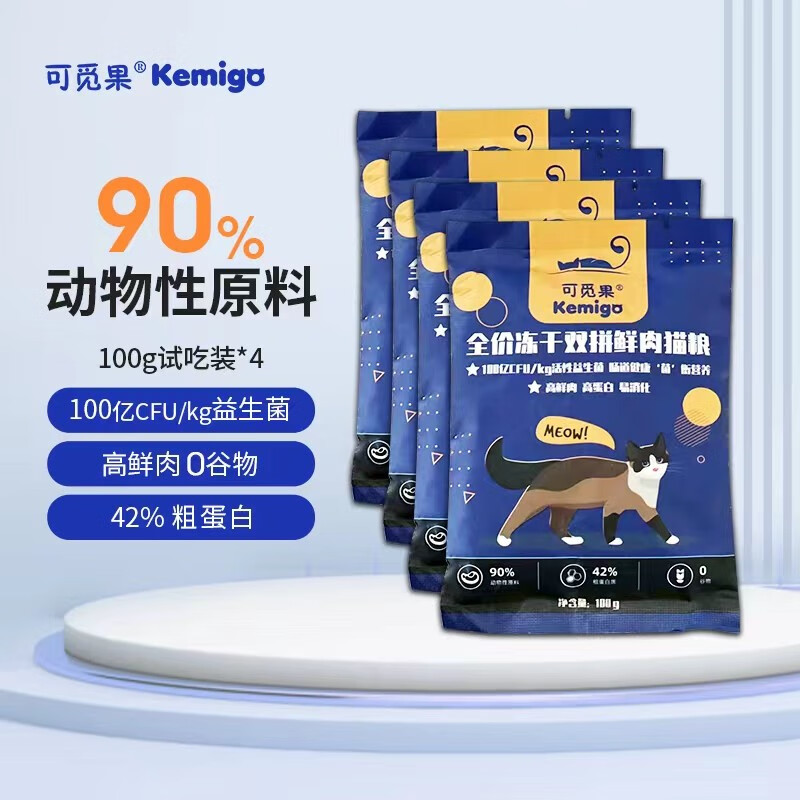可觅果冻干双拼猫粮1.6kg 鲜肉无谷粮 成猫幼猫全价益生菌猫粮 试吃装400g(100g*4)