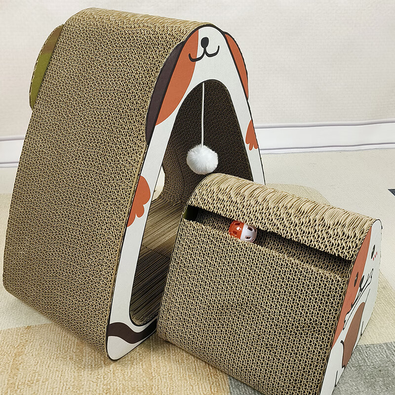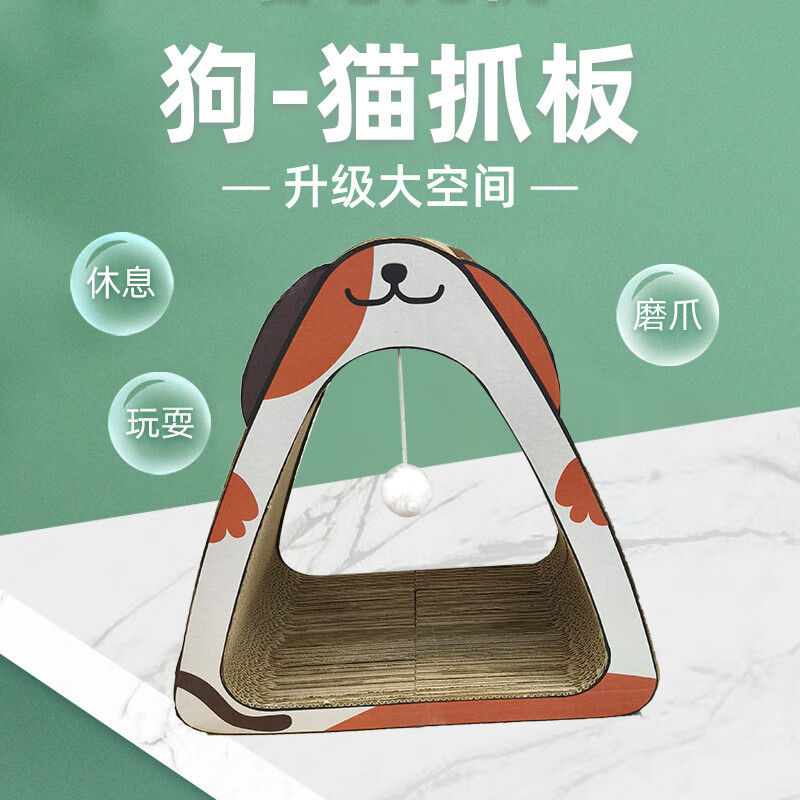 三角形立式卡通猫抓板带铃铛球猫咪解闷玩具耐磨不掉屑抓板 狗 460*260*460
