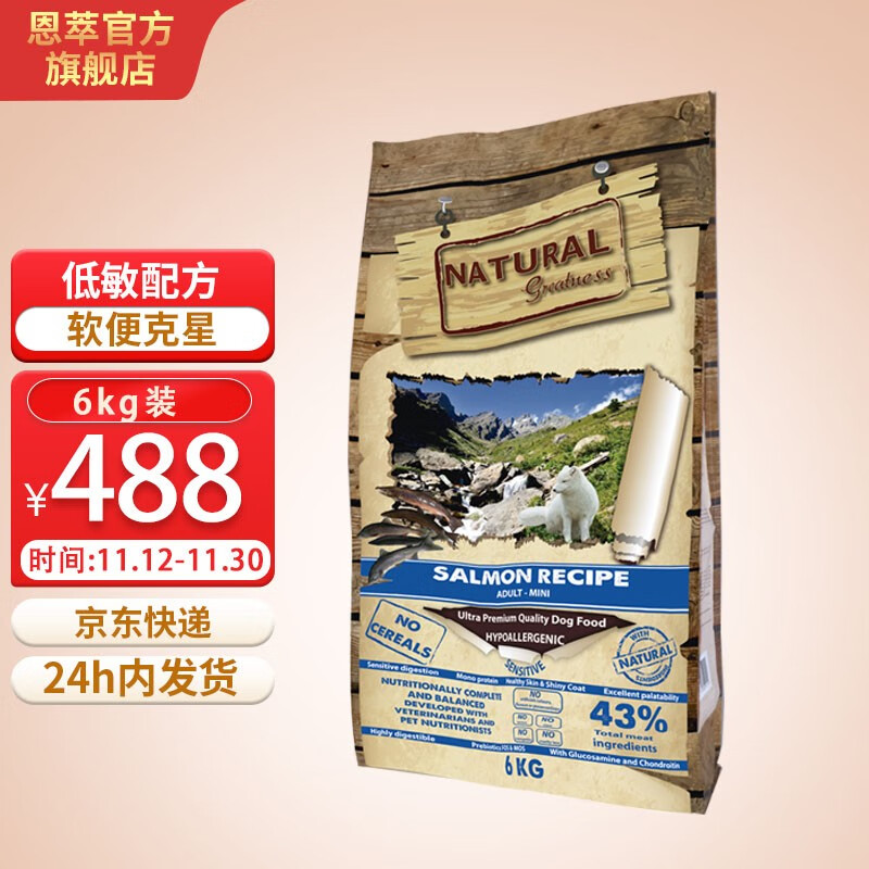 NATURAL greatness 恩萃 NG 狗粮 三文鱼配方 进口成犬小型犬狗粮 100g试吃装 6公斤装