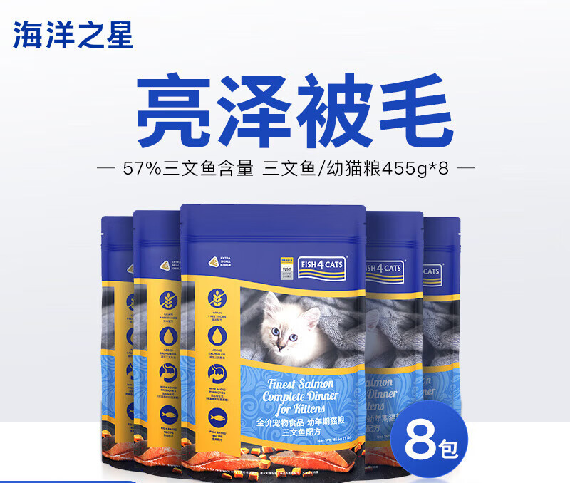 海洋之星幼猫粮8磅3.5kg三文鱼猫奶糕鱼肉无谷粮1-8个月小猫猫粮 三文鱼/ Mimi颗粒 3.6kg (455g*8包)
