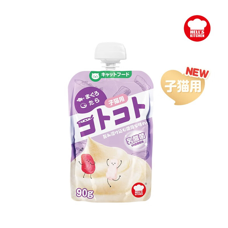 地狱厨房Hell's kitchen 咕噜酱 猫咪零食高汤湿粮罐头营养剂吸吸乐肉泥肉酱 金枪鱼鳕鱼 幼猫用 90g 单包
