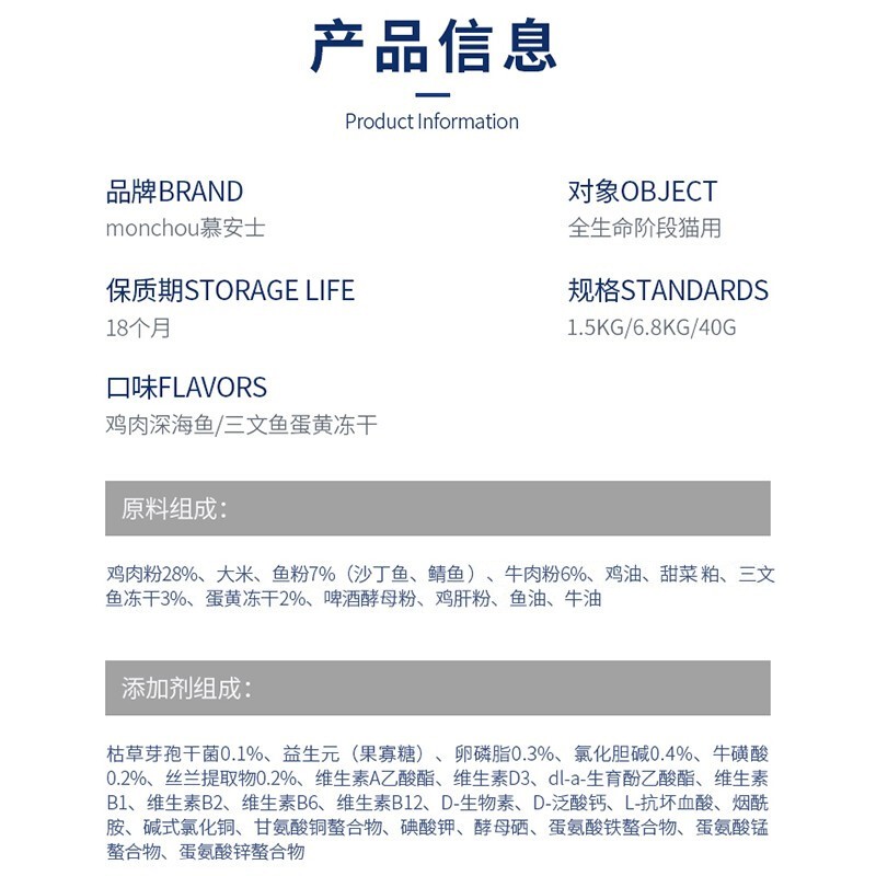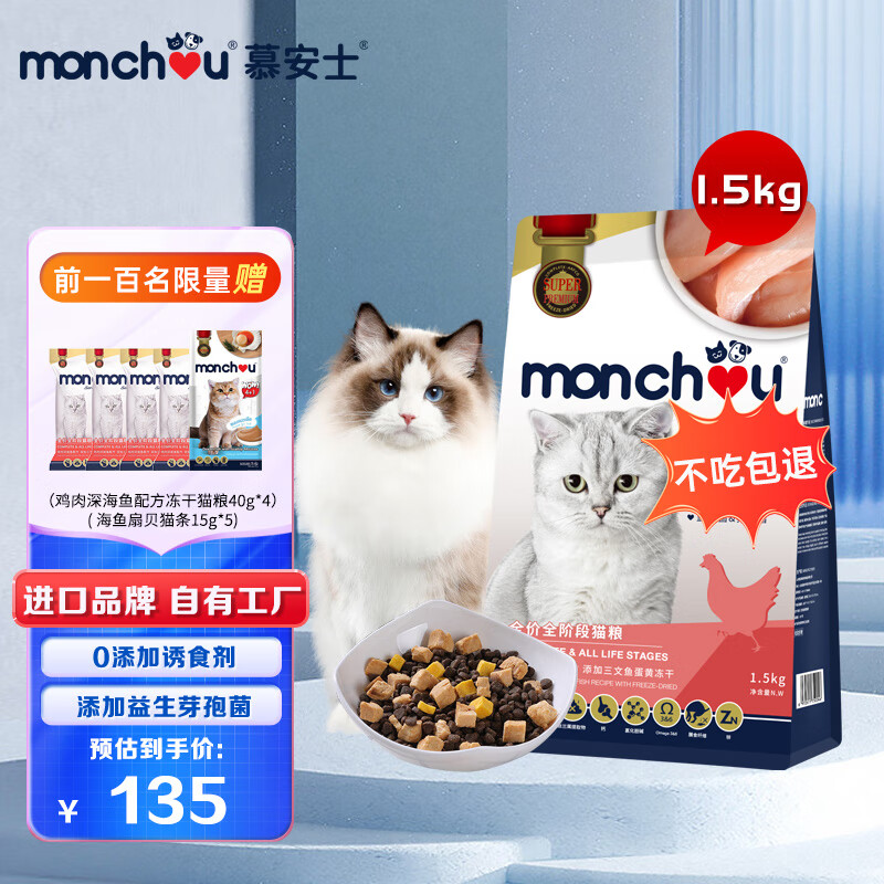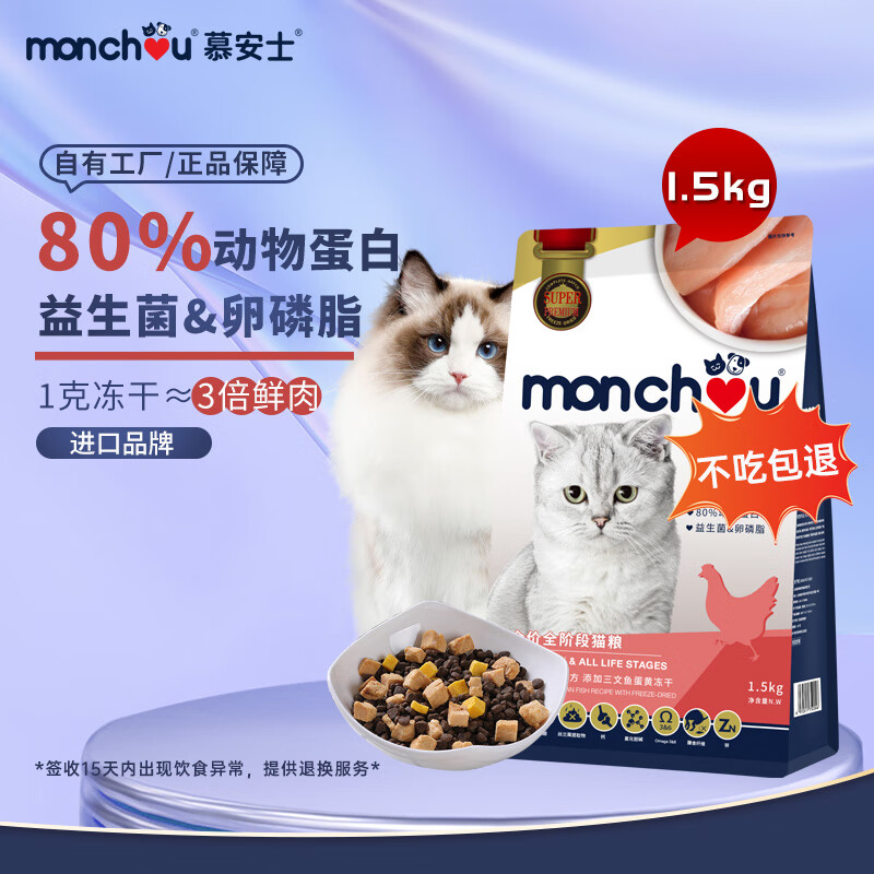 慕安士(monchou)泰国品牌幼猫成猫猫咪食品鸡肉深海鱼配方冻干猫粮1.5kg