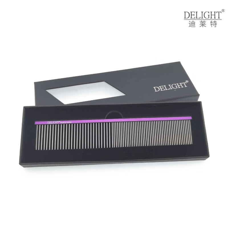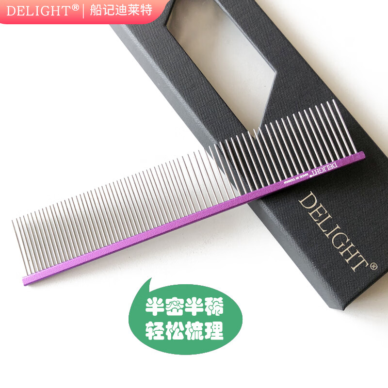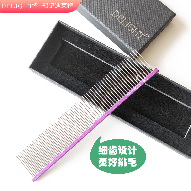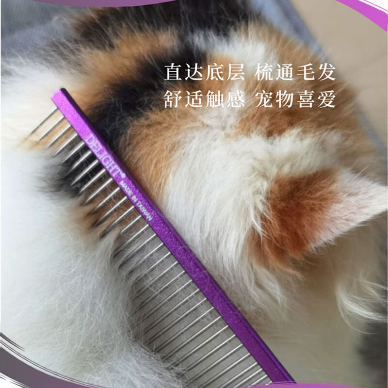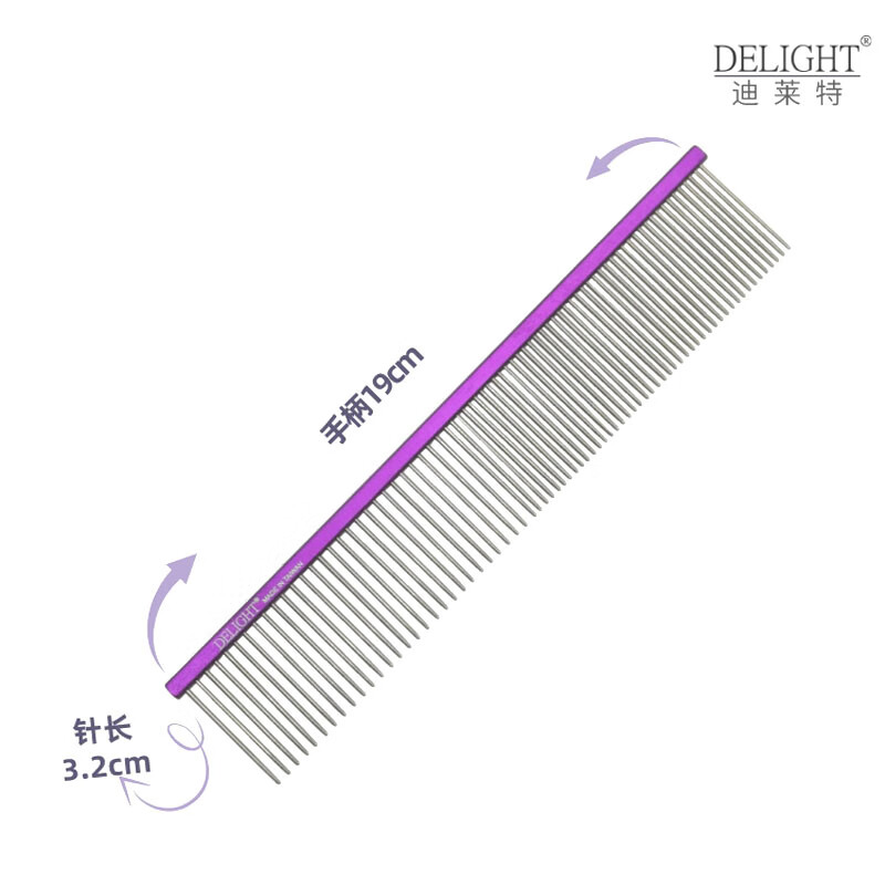 迪莱特船记(DELIGHT)宠物排梳白金款银狐超细针密齿狗直排梳猫狗梳子磨砂铝柄美容梳 轻羽梳(190*32mm)-魅力紫