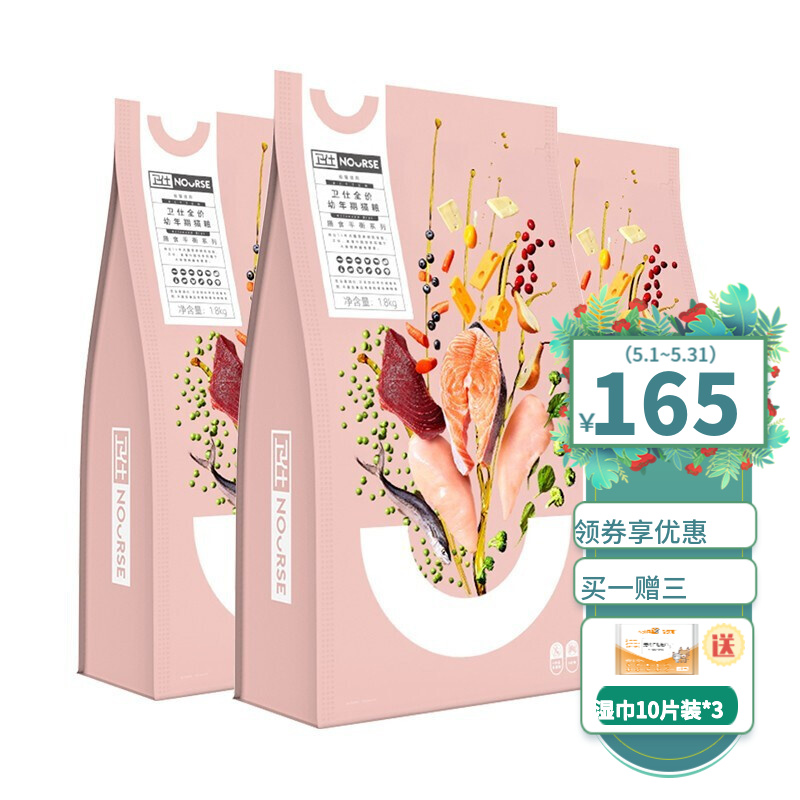 卫仕 猫粮 全阶段无谷成幼猫成猫英短蓝猫营养增肥主食猫咪主粮 幼猫粮1.8kg*3包