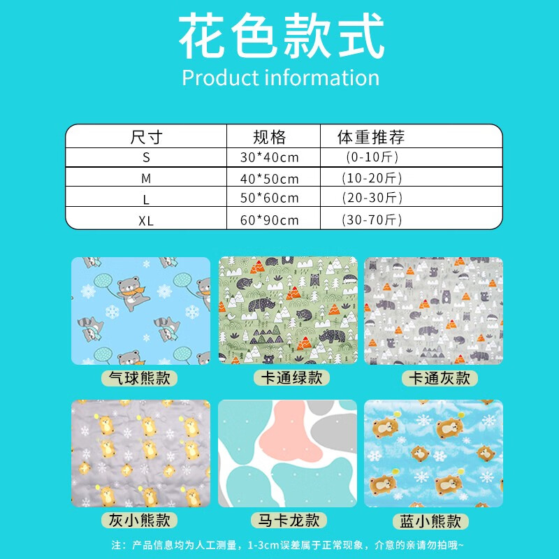 关谷庄宠物冰垫狗狗夏季凉垫子宠物猫咪夏天睡觉散热凉席冰窝垫降温神器 蓝熊款 40*50(推荐 15 斤以内)