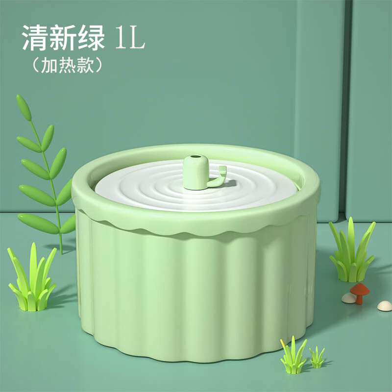 猫咪饮水机流动陶瓷恒温加热猫饮水器自动宠物狗狗喂水循环喝水器 加热款【鲸鱼饮水机 滤芯1】绿色 【静音不漏电 自动断电】 1000毫升
