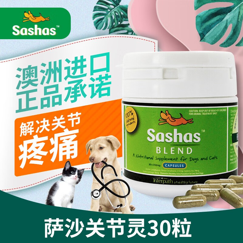 【8仓发货】萨沙sashas关节灵鲨鱼软骨素狗猫咪关节炎胶囊粒病疼痛宠物补钙片骨折关节修护骨质疏松 30颗/瓶【犬猫通用】