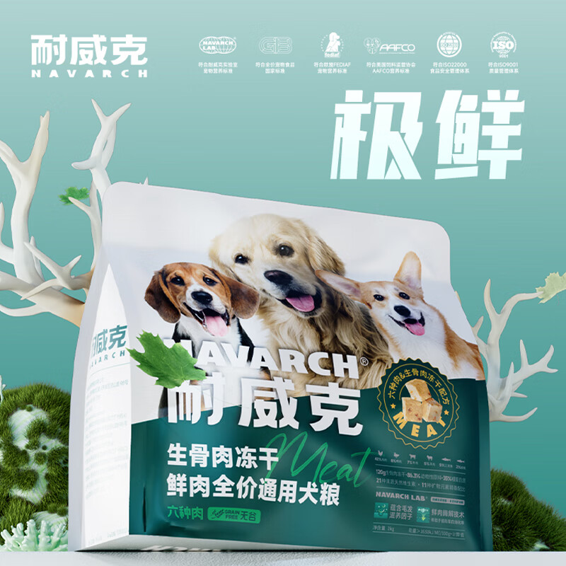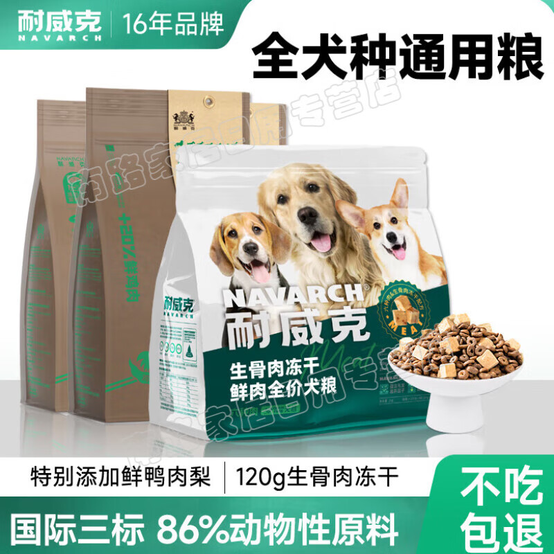 耐威克(Navarch)狗粮16斤20斤 全犬种冻干无谷金毛泰迪 成幼犬小中大型通用 经典鸡肉味成犬粮美毛亮眼 5kg10斤