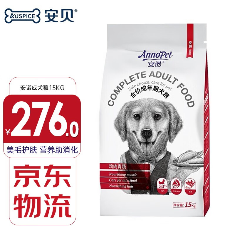 安贝(Auspice)狗粮成犬全价金毛狗粮拉布拉多阿拉斯加粮全犬种通用成犬粮15kg