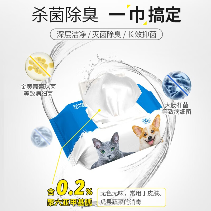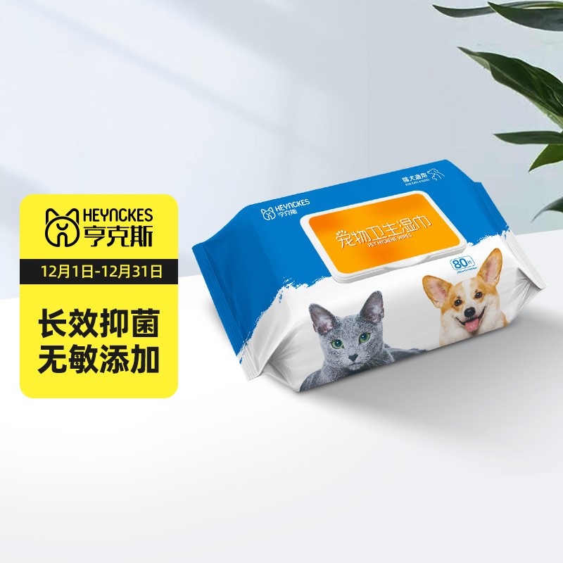 亨克斯宠物湿巾狗狗猫咪专用清洁去泪痕湿纸巾80抽无酒精