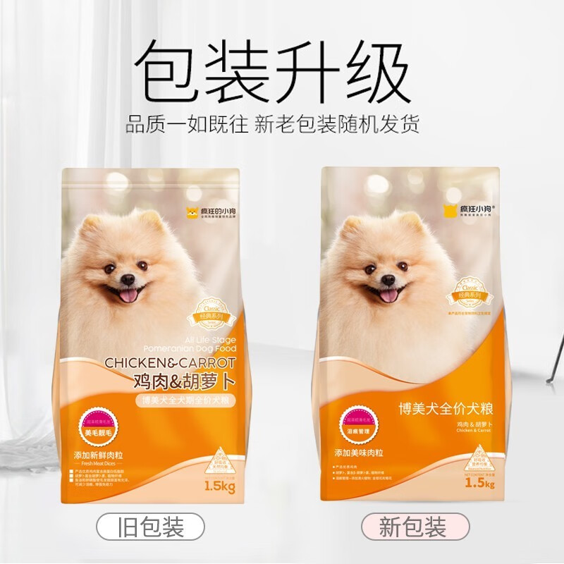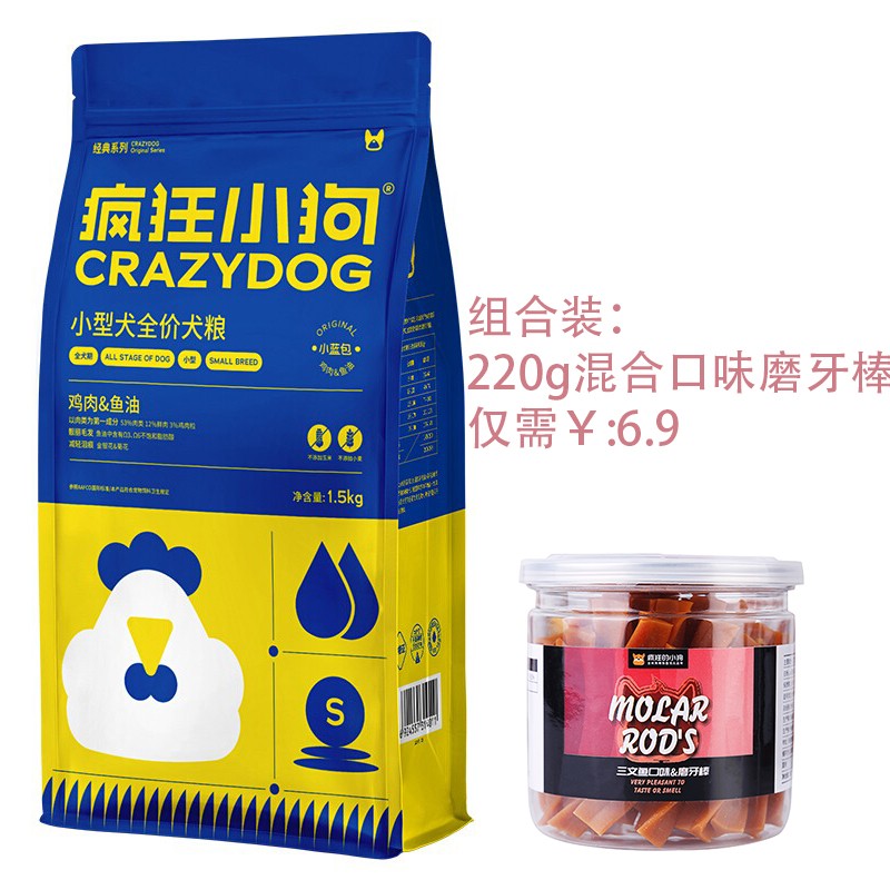 疯狂小狗 狗粮小型犬幼犬成犬泰迪贵宾博美比熊通用型肉粒双拼粮 【套装】升级款小蓝包 混合口味磨牙棒