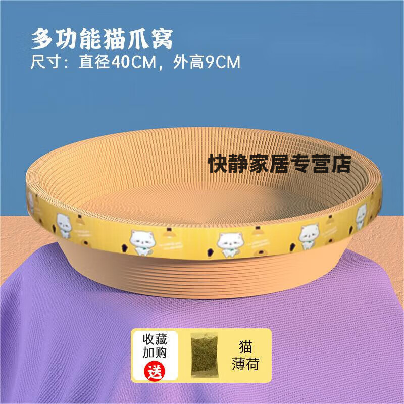 猫抓板猫窝一体耐磨耐抓不掉屑圆形特大号瓦楞纸立式板盆猫咪玩具 (直径40cm)升级瓦楞纸 猫薄荷【10公斤内适用