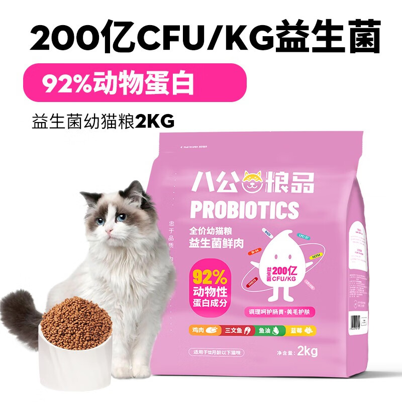 八公粮品 猫粮成猫全价无谷鲜肉幼猫猫粮低敏调理肠胃猫干粮 益生菌幼猫4斤【升级款】