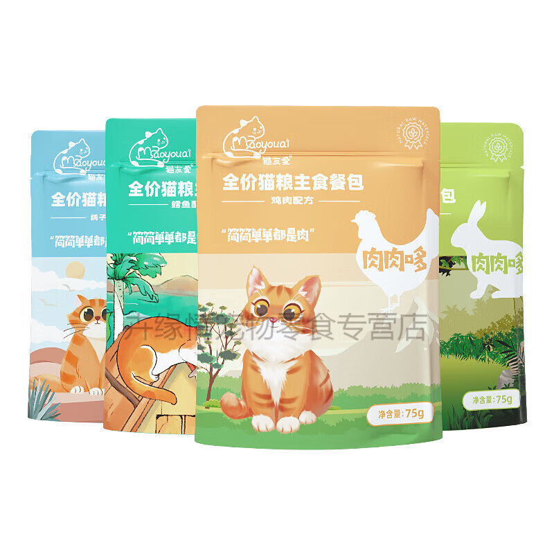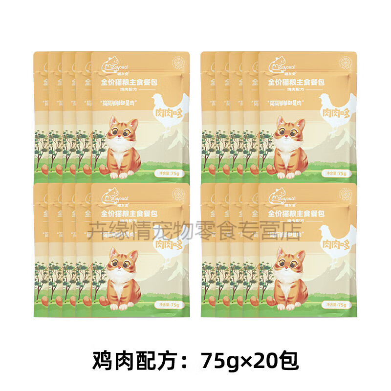 猫友爱全价猫咪补水猫湿粮大肉包鸽子鸡肉兔肉主食罐头75克X20包 鸡肉味 1500g (共75g×20包)