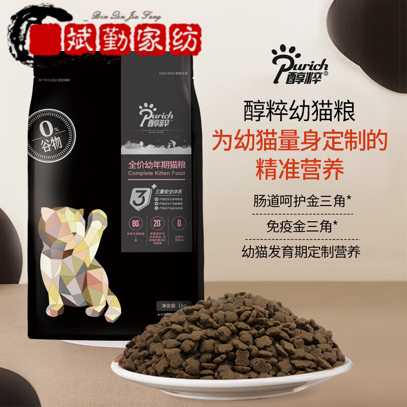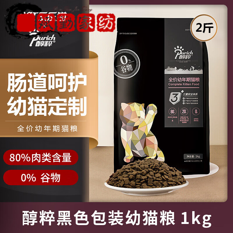醇粹(Purich)黑色标全价幼年期猫粮宠物猫咪营养冻干粮布偶折耳易消化 全价幼 全价幼年期猫粮1kg 1kg