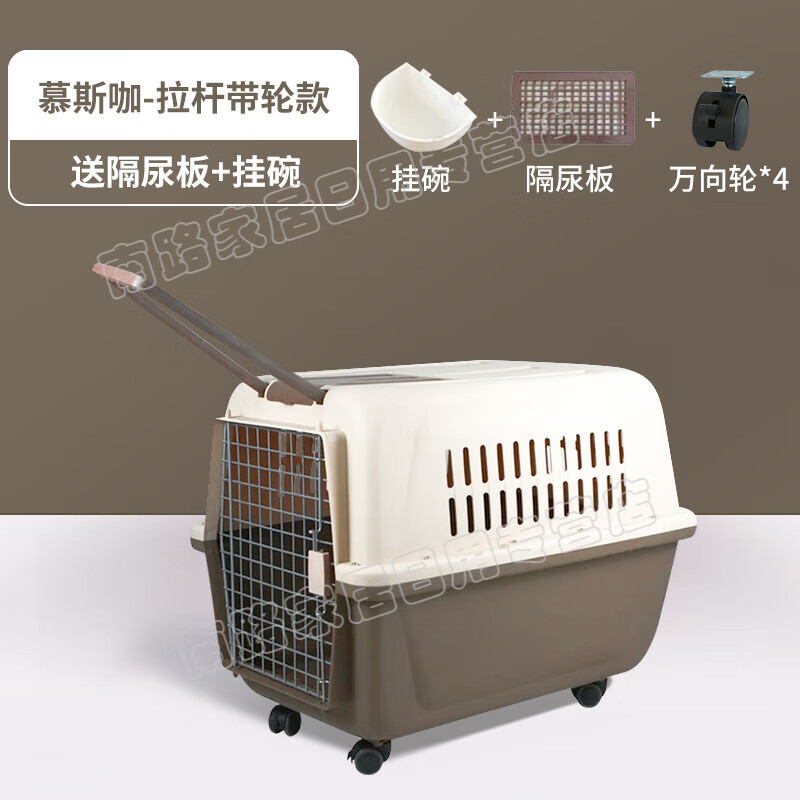 波奇多 国航宠物托运箱狗狗猫咪航空箱猫笼子便携外出狗笼手提猫箱子 慕斯咖[拉杆万向轮]贈配件 大号(20斤內)