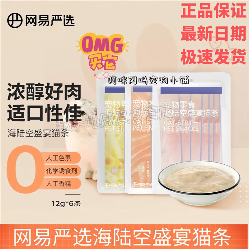 网易严选猫条鸡肉味猫咪零食营养增肥发腮海陆空盛宴宠物湿粮幼猫 随机口味1袋 6支1袋