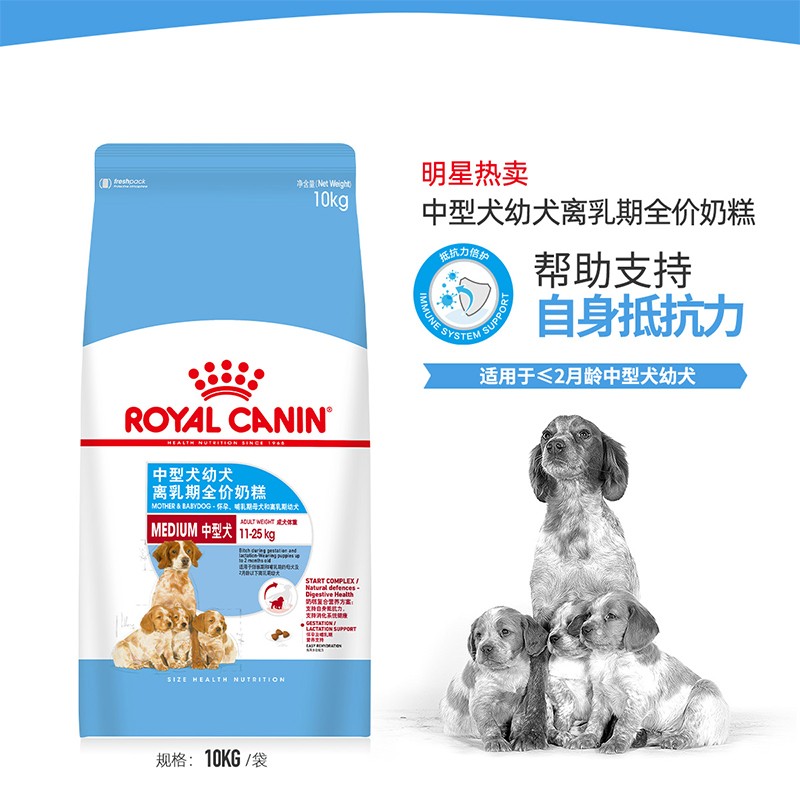 【自营时效】ROYAL CANIN 皇家品牌 MES30中型犬幼犬离乳期通用 奶糕全价狗干粮 【 大包装 I 约69天餐量】10kg 0-2月龄离乳期
