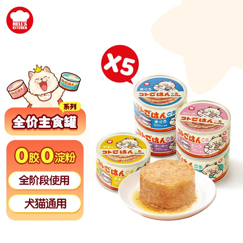 地狱厨房(Hell's Kitchen)全价主食罐头咕噜饭全猫成猫猫粮湿粮罐头 猫咪主食罐 170G 混合装 5罐