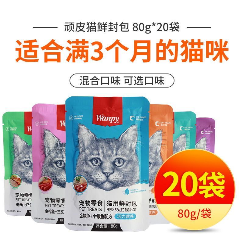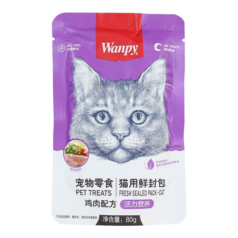 顽皮Wanpy猫鲜封包猫湿粮猫零食鸡肉鱼猫罐头增肥营养主猫粮10袋 [实惠装]80g*20袋 鸡肉