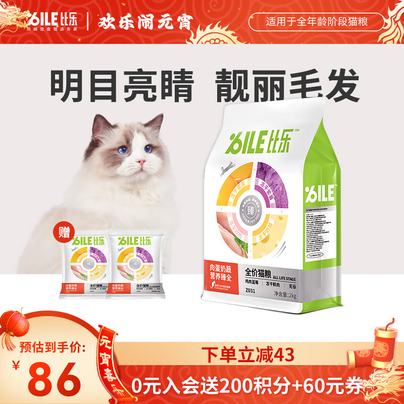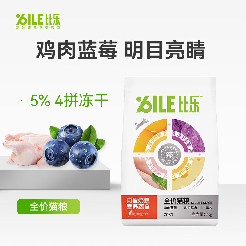 比乐臻系列全价猫粮 肉蛋奶蔬低敏无谷配方成猫幼猫全期猫粮 鸡肉蓝莓全价猫粮2kg