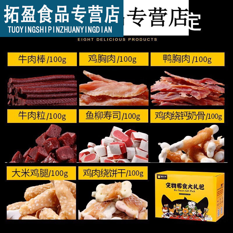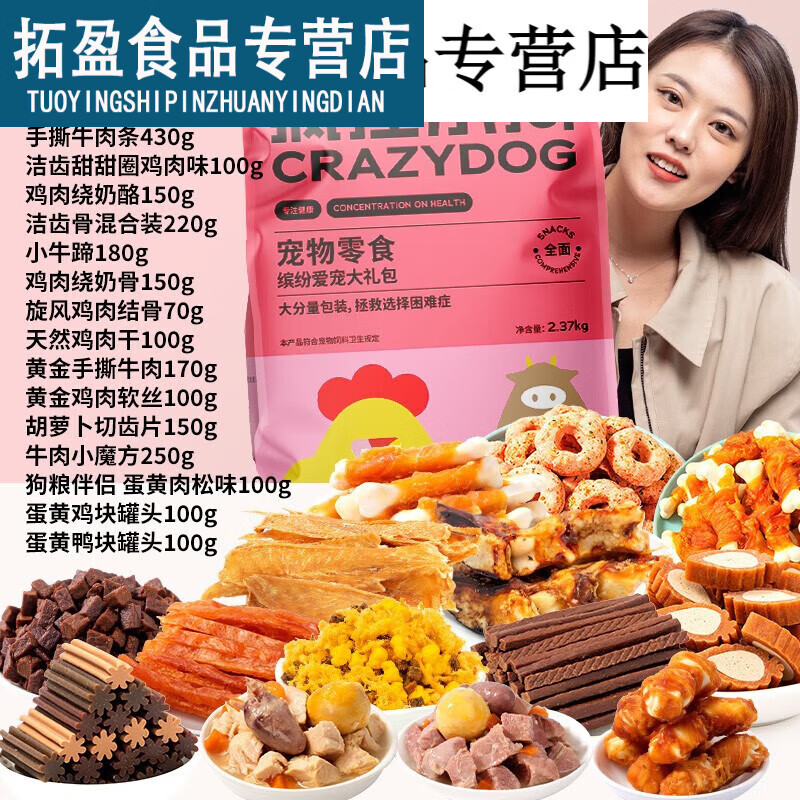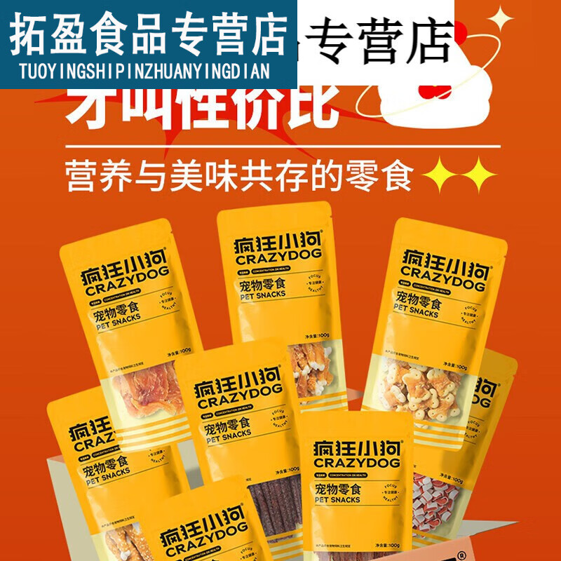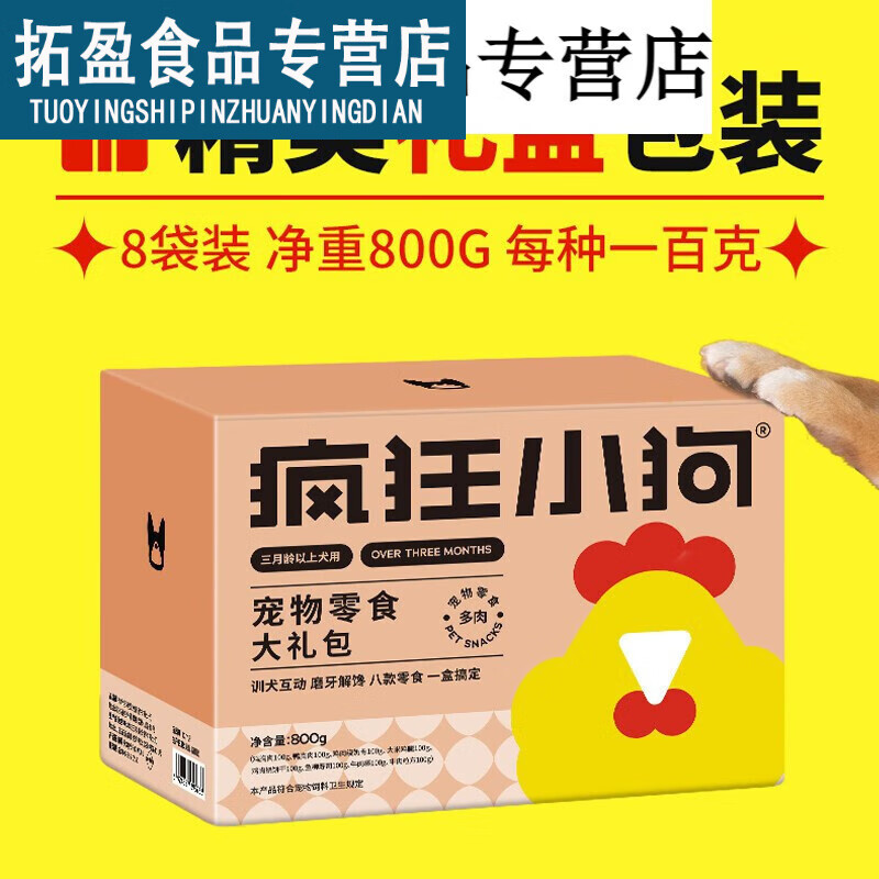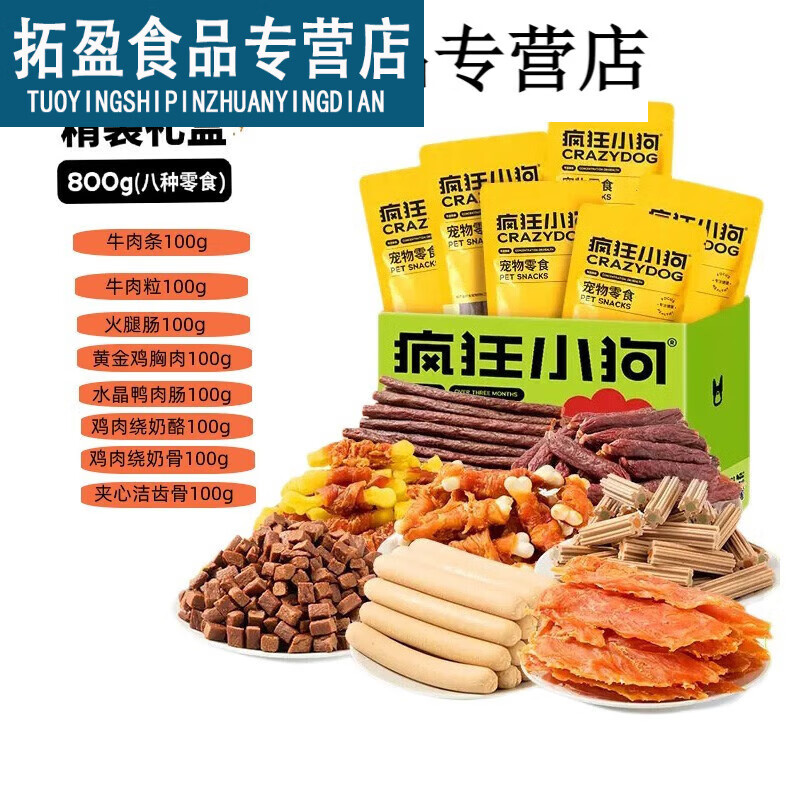 疯狂小狗宠物狗零食大礼包泰迪金毛柯基拉布拉多通用幼犬成犬磨牙棒牛肉粒 800g宠物零食大礼包8袋