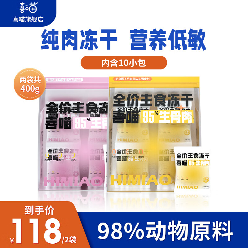 喜喵全价主食冻干生骨肉全阶段通用成猫幼猫猫咪主食冻干无谷猫粮 鸡肉 鸡肉猫草口味200g*2袋