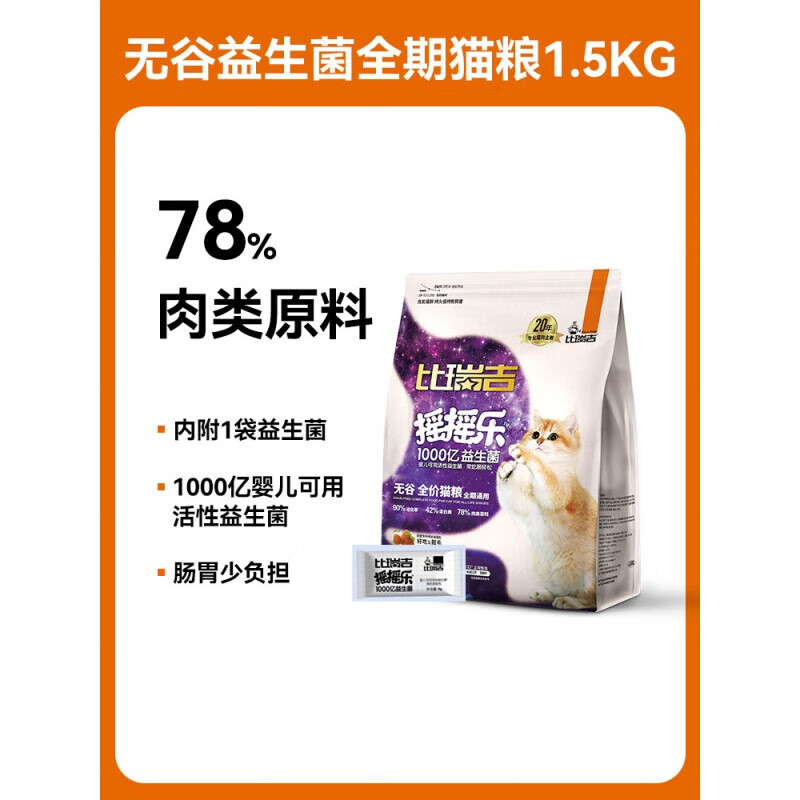 比瑞吉通用型成幼年全期猫粮主粮摇摇乐益生菌无谷全价猫粮1.5kg 添加益生菌软便克星无谷全期猫粮 1.5kg
