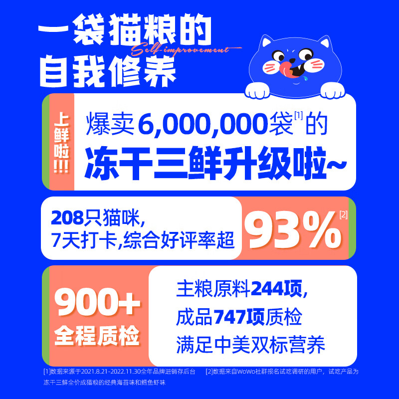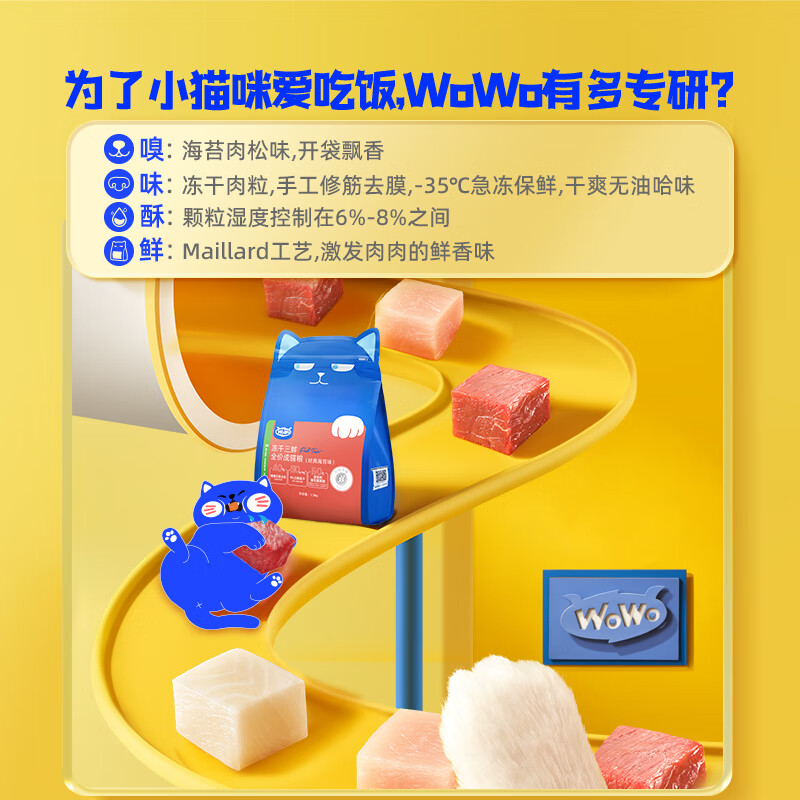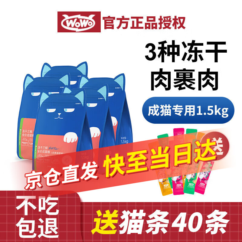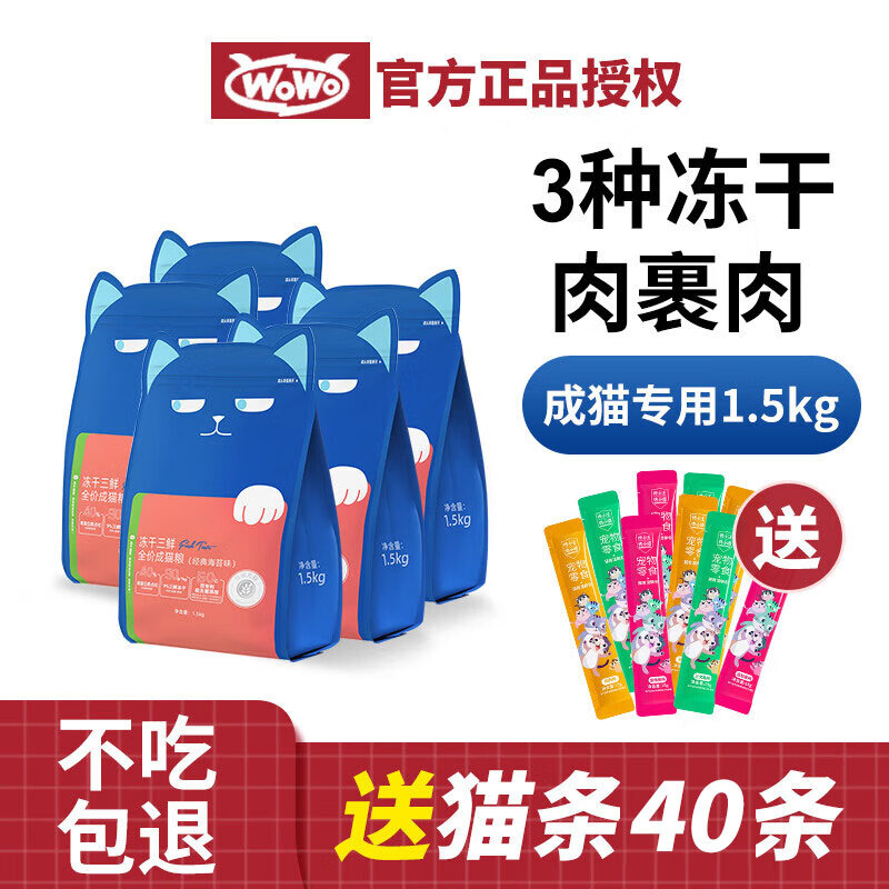 喔喔(WOWO)猫粮成猫冻干全价无谷猫干粮增肥发腮布偶英短美短主食 1.5kg3斤