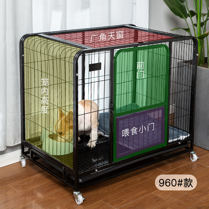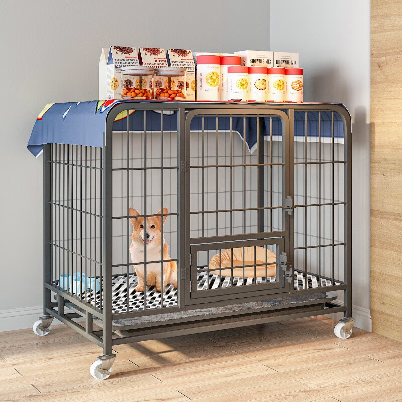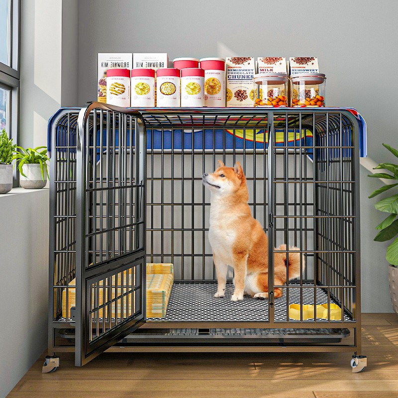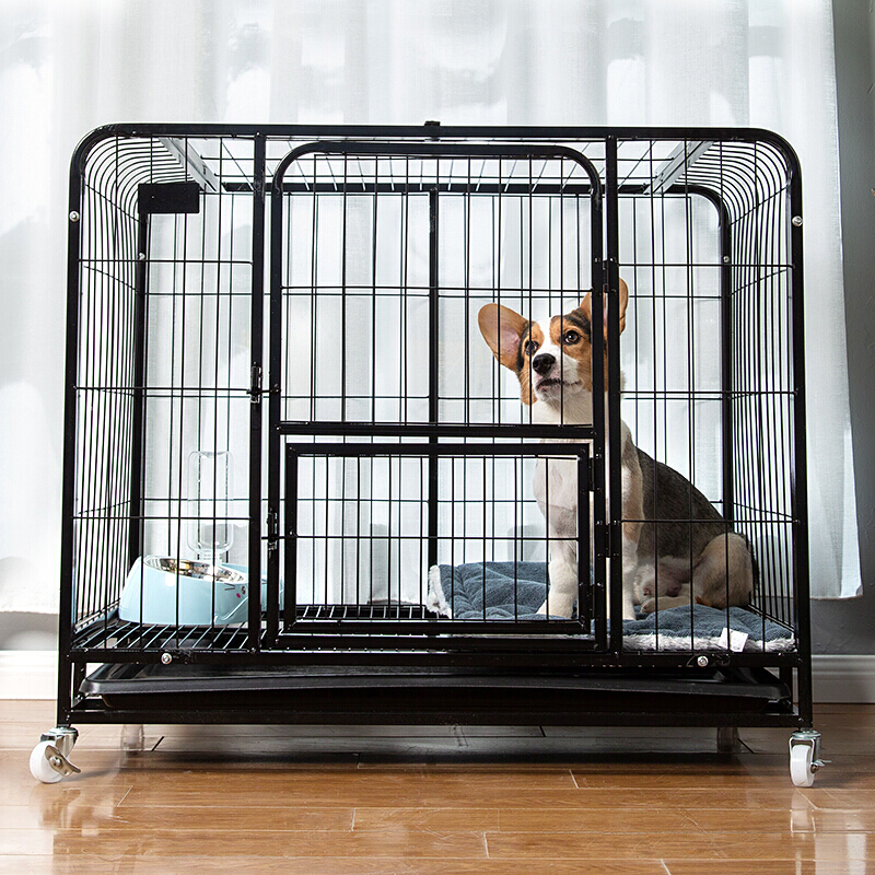 汤琪(TANGQI)大型犬狗笼子中型犬小型犬加粗加密加固方管狗屋带厕所宠物笼子狗 黑色L号960# 93*63*82cm