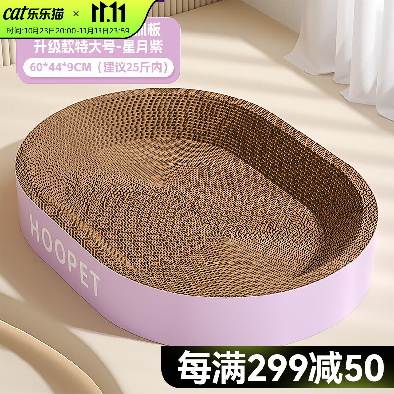 华元宠具(hoopet)猫抓板耐磨不掉屑猫窝一体猫咪抓盆特大号圆形四季通用瓦楞纸玩具 椭圆-星月紫-特大号