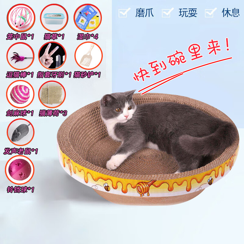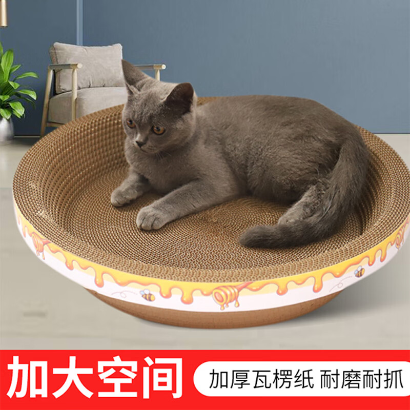 猫抓板窝不掉屑猫抓盆瓦楞纸猫抓板猫窝一体猫咪玩具防猫抓磨爪板JM 精美款小碗33*8两个装