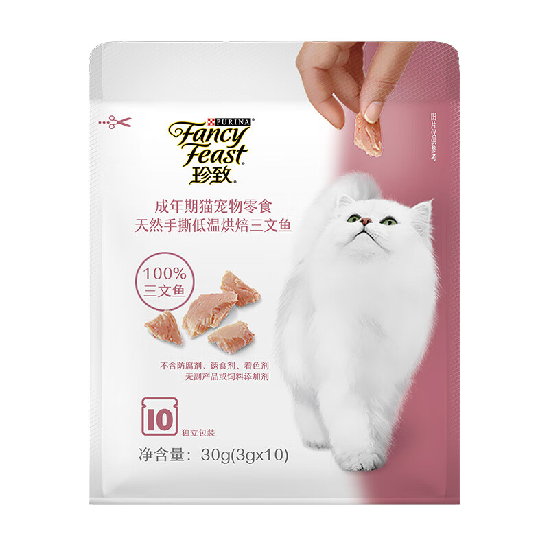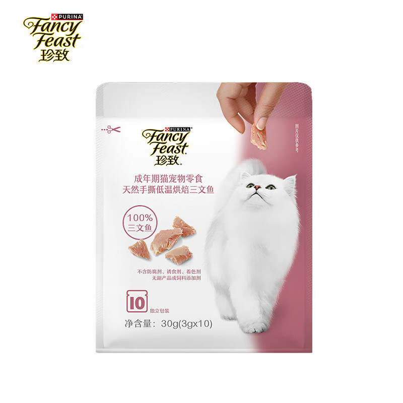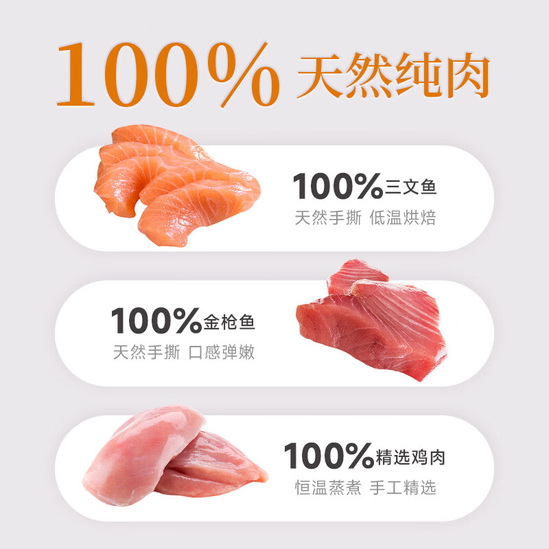 珍致猫零食成猫幼猫100%天然纯肉手撕肉干30g(3g*10)低温烘焙三文鱼