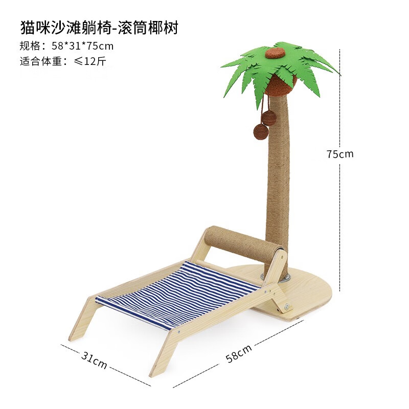 POPOCOLA猫抓板猫咪躺椅一体夏季耐抓耐磨幼猫用小沙发猫咪抓板猫窝 沙滩滚筒床 椰树(适合12斤内)