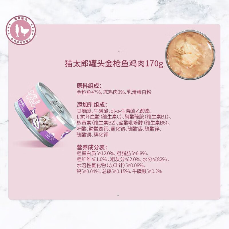猫太郎猫零食猫罐头湿粮大汤罐成猫幼猫罐头猫咪零食补水罐 金枪鱼鸡肉味170g*6罐