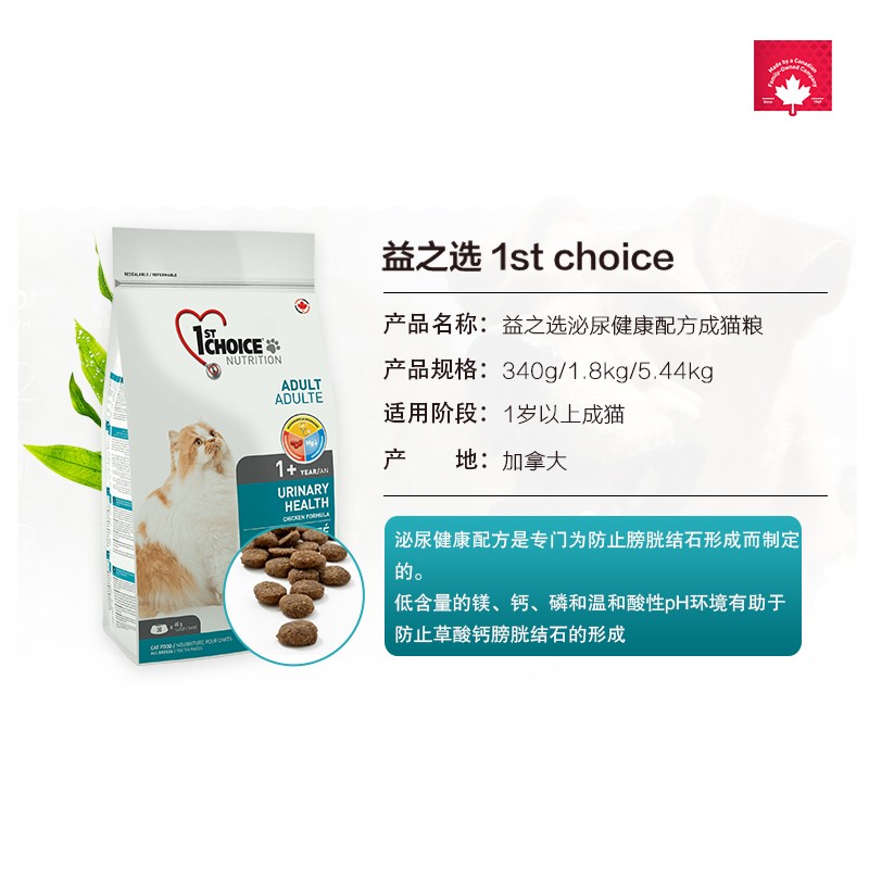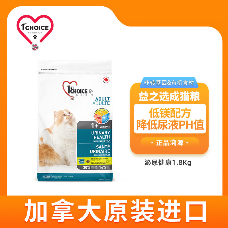 加拿大原装进口 益之选(1'st choice)猫粮 泌尿健康配方成猫粮1.8Kg 鲜肉天然粮鸡肉配方喵咪通用主食主粮