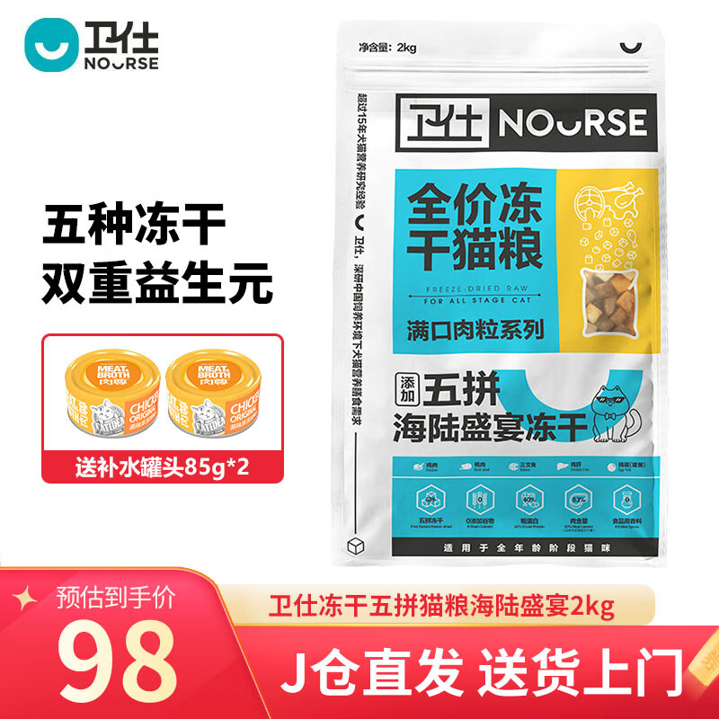 卫仕冻干五拼猫粮2kg 0谷物全价发腮营养成猫幼猫通用 海陆盛宴2kg