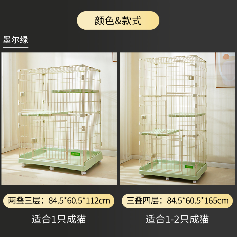 汤琪(TANGQI) 猫笼厕所一体大号猫别墅超大自由空间家用室内三层猫屋猫舍猫窝 墨尔绿 84.5*60.5*112cm