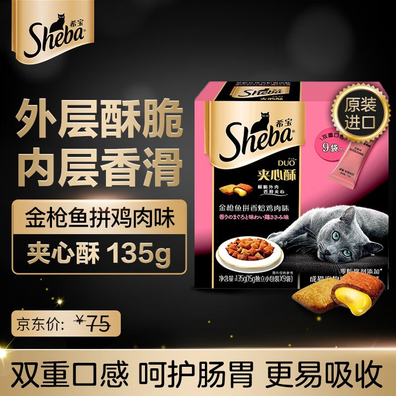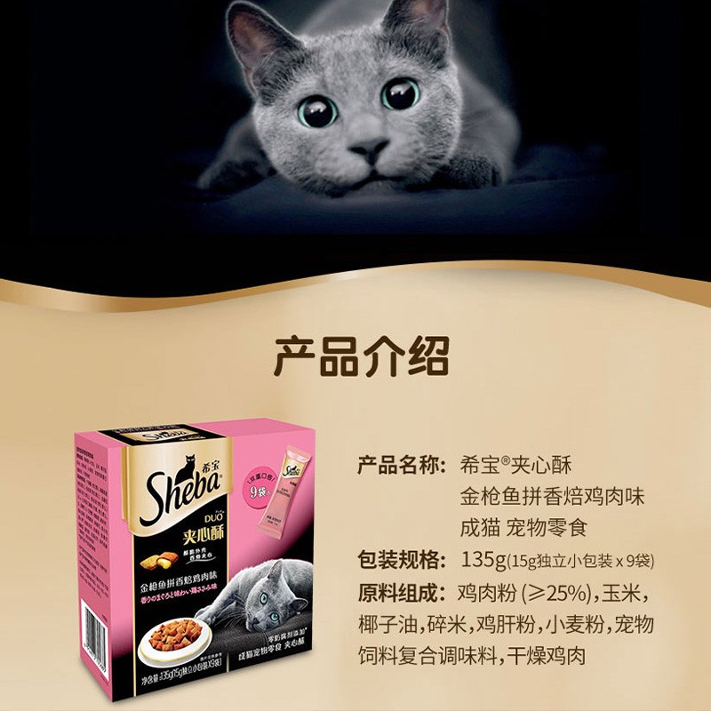希宝(Sheba) 猫零食成猫夹心酥饼干 金枪鱼拼香焙鸡肉味135g