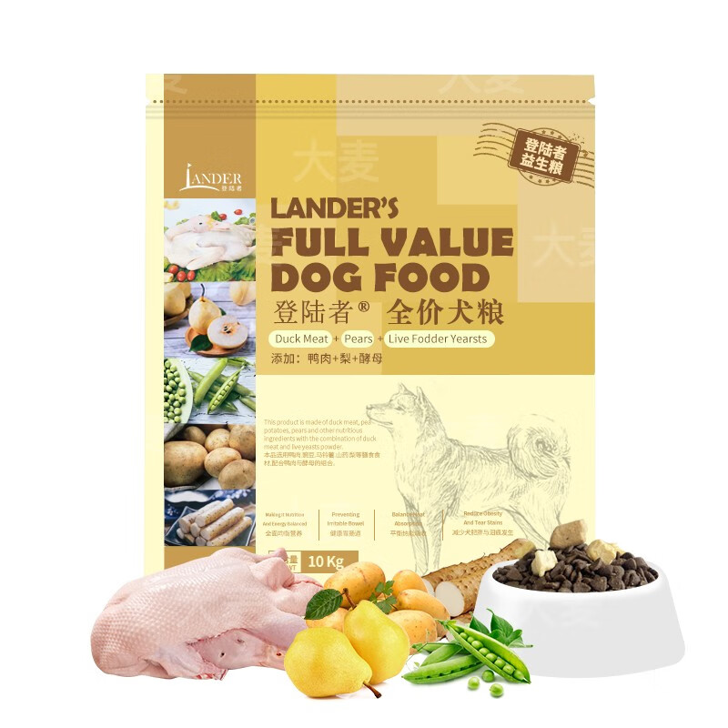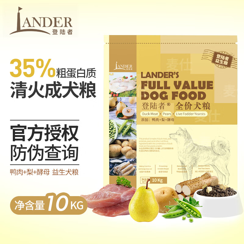 登陆者LANDER登陆者狗粮蓝波万全价全期犬粮鸭肉梨狗粮成犬小型犬鸡肉鱼 老客偏好鸭肉 梨 活性酵母10kg