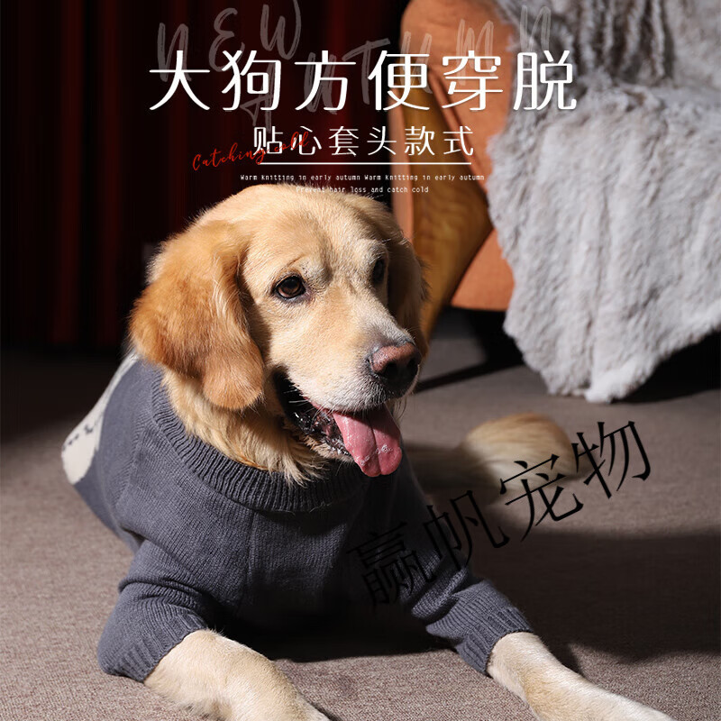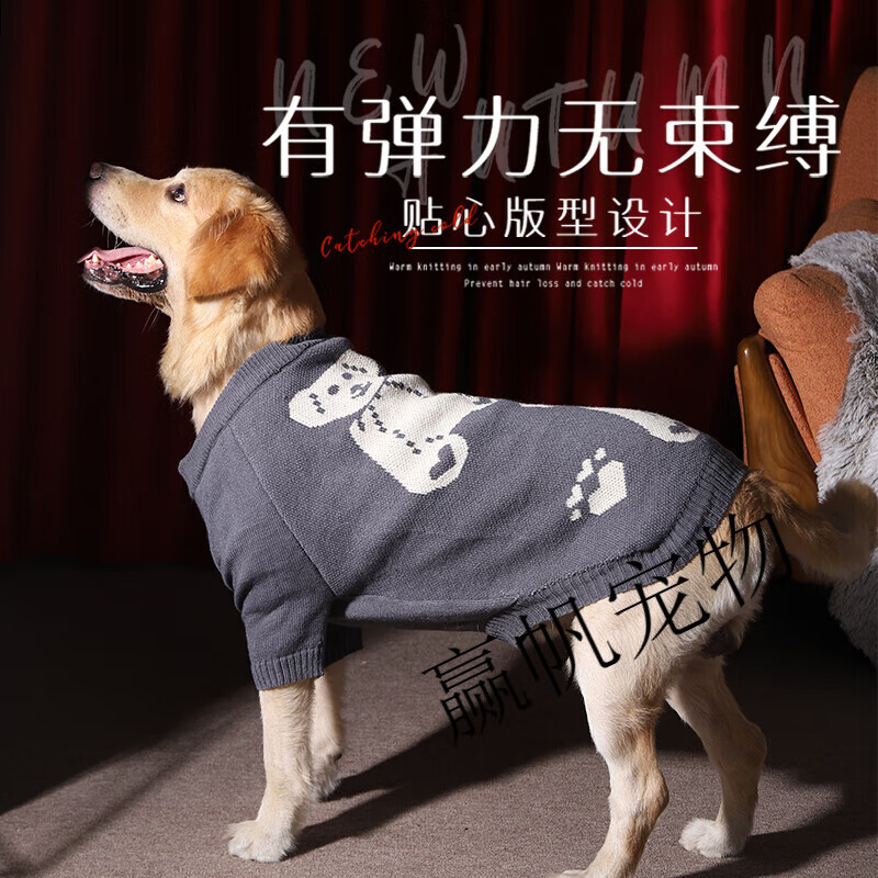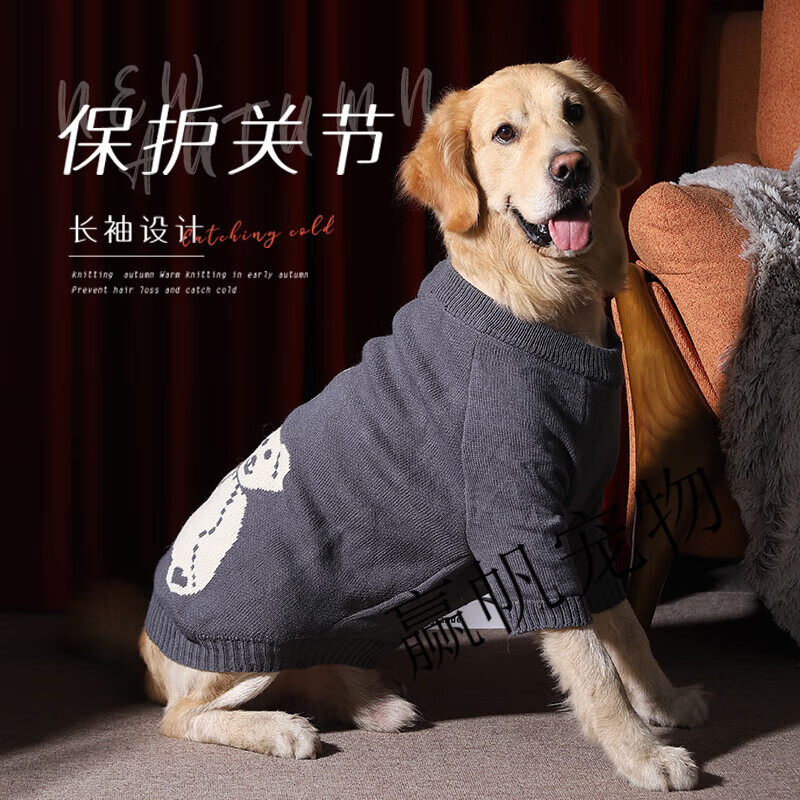 狗狗衣服冬季冬装金毛萨摩耶大型犬边牧拉布拉多新年大狗秋季毛衣 灰色小熊毛衣-脖围偏大,体型较小建议选小一号 3XL胸围66cm建议约25-40斤